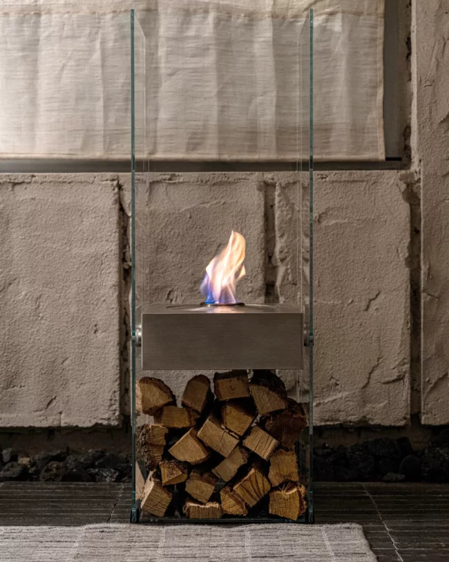 Fashioned from brushed stainless steel and toughened glass, Ghost is a strikingly elegant freestanding fireplace that adds instant ambiance to indoor spaces.