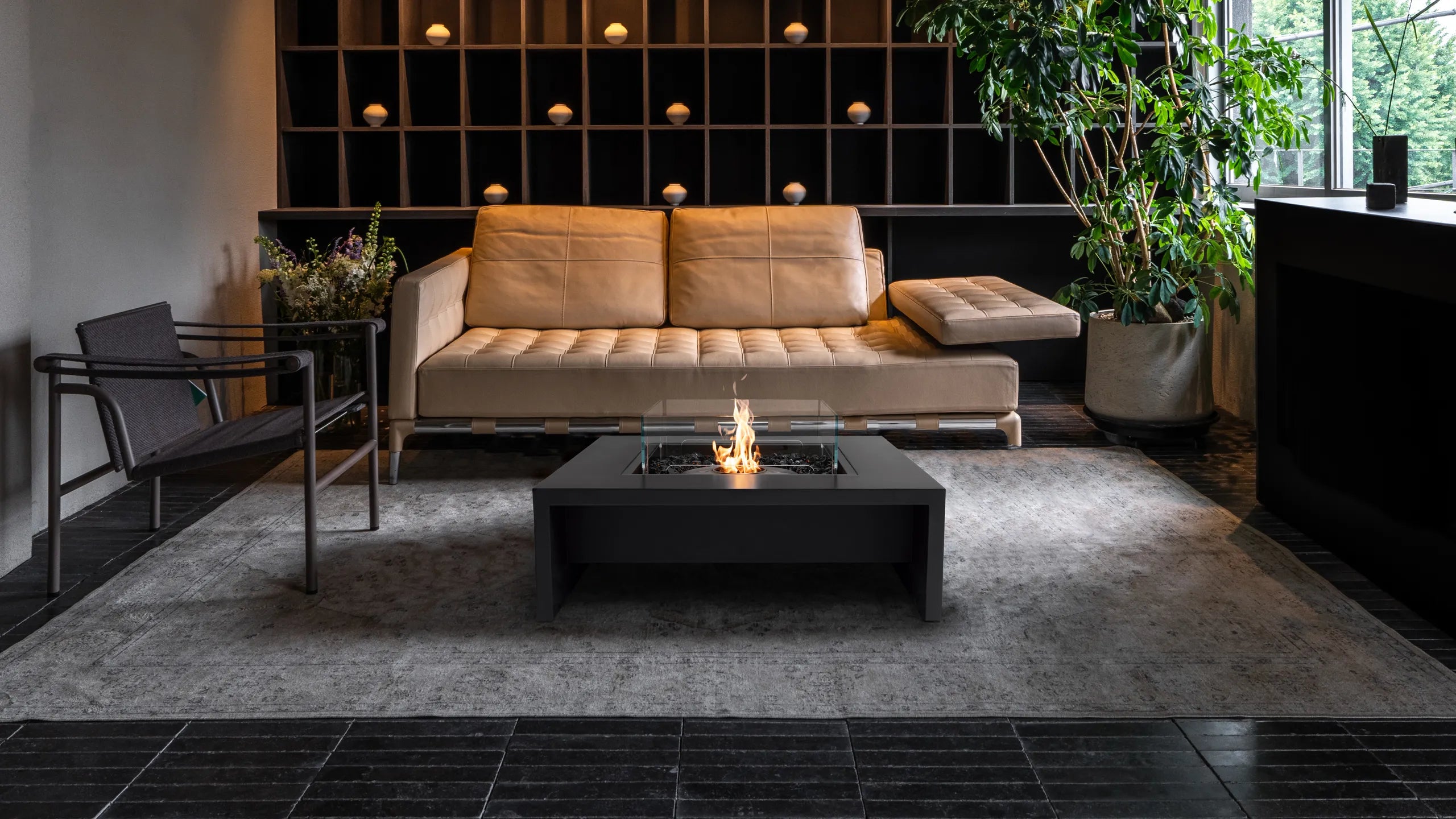 Pair it with a glass fire screen to stabilise the flame in windy conditions. Sidecar 24 is designed to accommodate two different glass fire screens: a recessed square and a raised round screen.