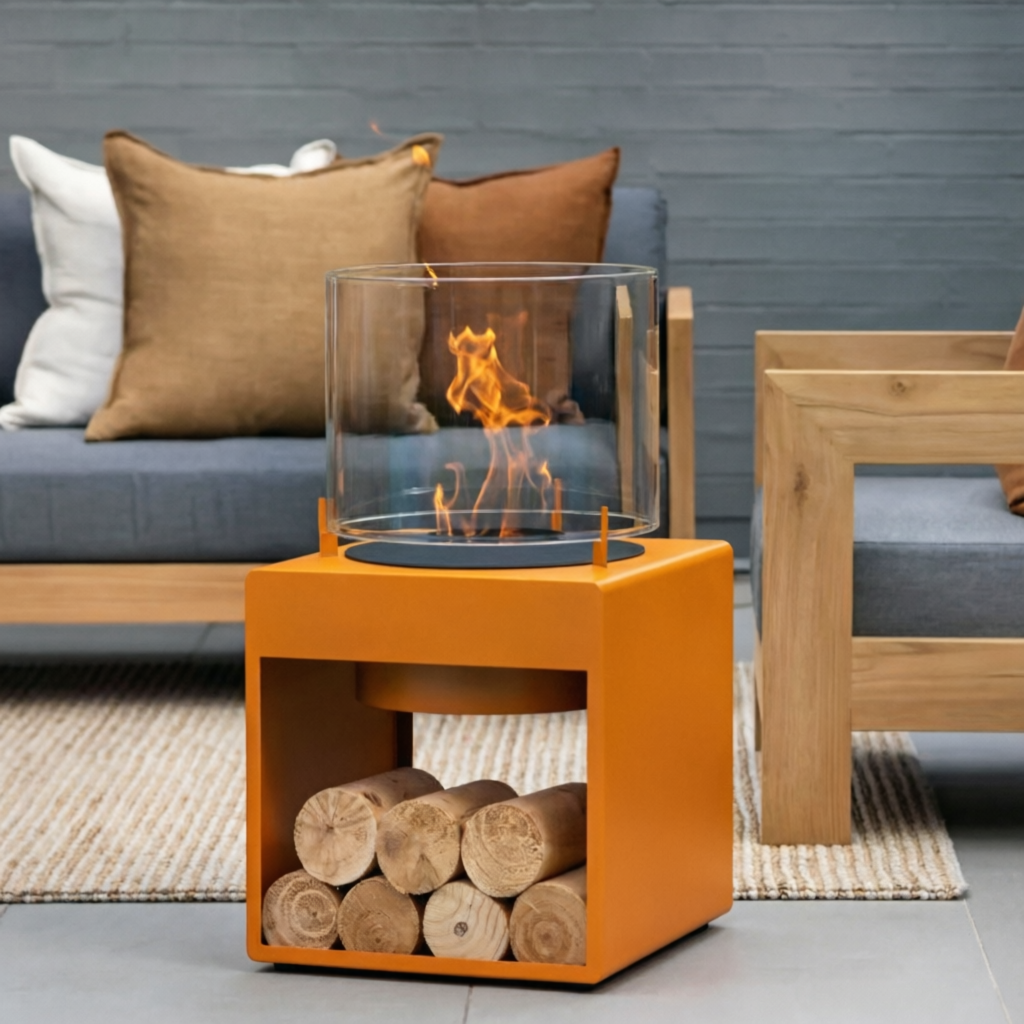 A low set modern retro style piece of fire furniture, the Pop 8L is a combination of contemporary influences and nostalgic design elements. Available in bold orange or yellow, black or white, or a custom colour to suit your unique décor, this freestanding, eco friendly fire will elevate your room or alfresco design.